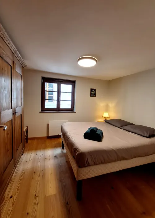 • ein Schlafzimmer mit einem Doppelbett (160/200) und einem Babybett (auf Anfrage)